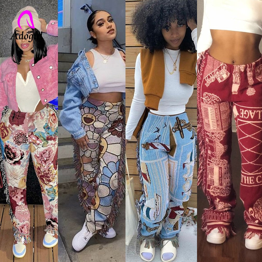 Tassel Patchwork Striped Print Pant